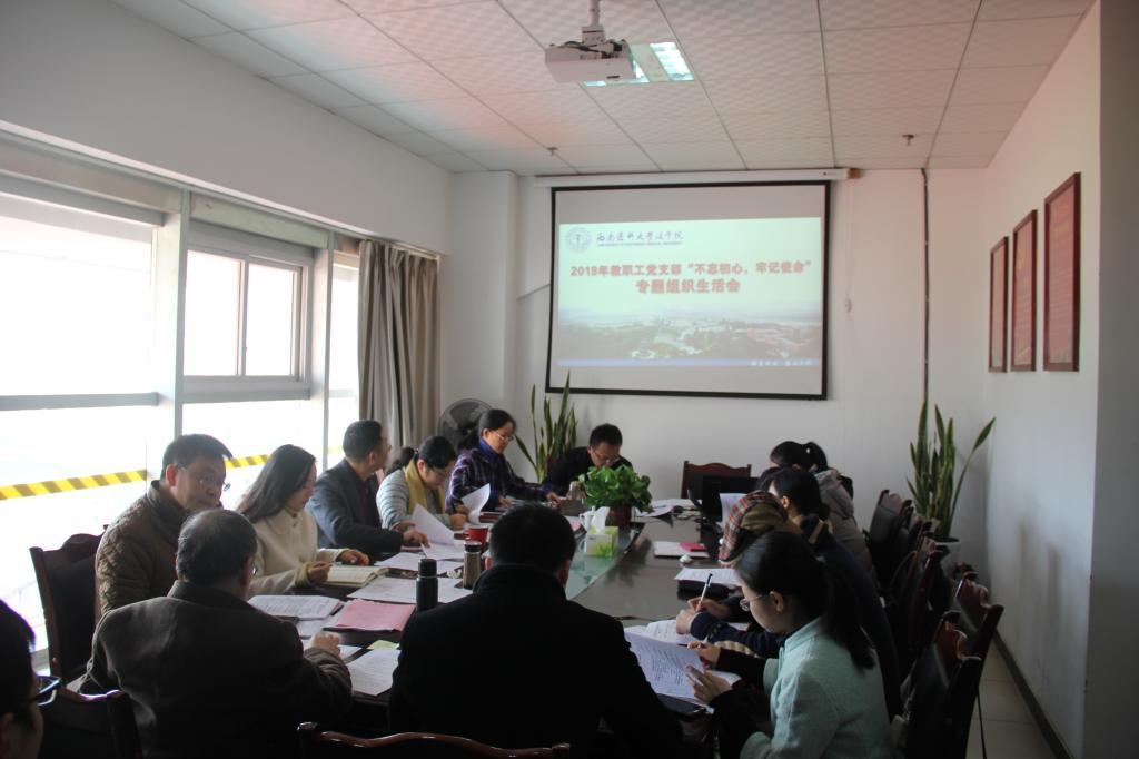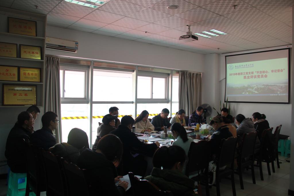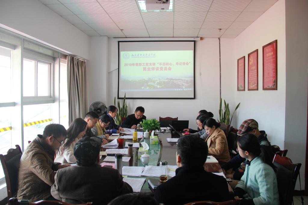会议第一阶段进行2019年度支部书记述职考评。教工党支部书记王贵勤、学生党支部书记周正颐先后对个人2019年度的政治思想及理论学习情况、履行职责情况、廉洁自律情况等方面进行了述职述廉,随后,党总支委员及党员同志根据考核内容,分别对支部书记进行民主评议、量化打分。会议第二阶段进行党支部“不忘初心、牢记使命”专题组织生活和民主评议党员会。教工党支部书记王贵勤领学了十九届四中全会精神,并传达领学了学校关于“不忘初心、牢记使命”主题教育的有关部署和要求,与会党员在前期党员组织生活学习的基础上开展民主评议党员,通过批评与自我批评,认真检视了存在的问题与不足,并对支部和个人的整改方向提出了很多好的意见和建议。