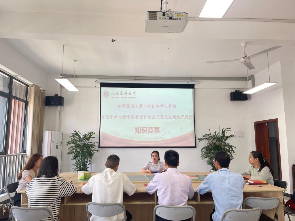 为深入学习贯彻习近平新时代中国特色社会主义思想,法学院教工第二支部于2023年5月12日下午3点在文渊楼529进行了主题教育知识竞赛。竞赛以问卷星试卷+现场抢答相结合的形式进行,党员们积极参与其中。
