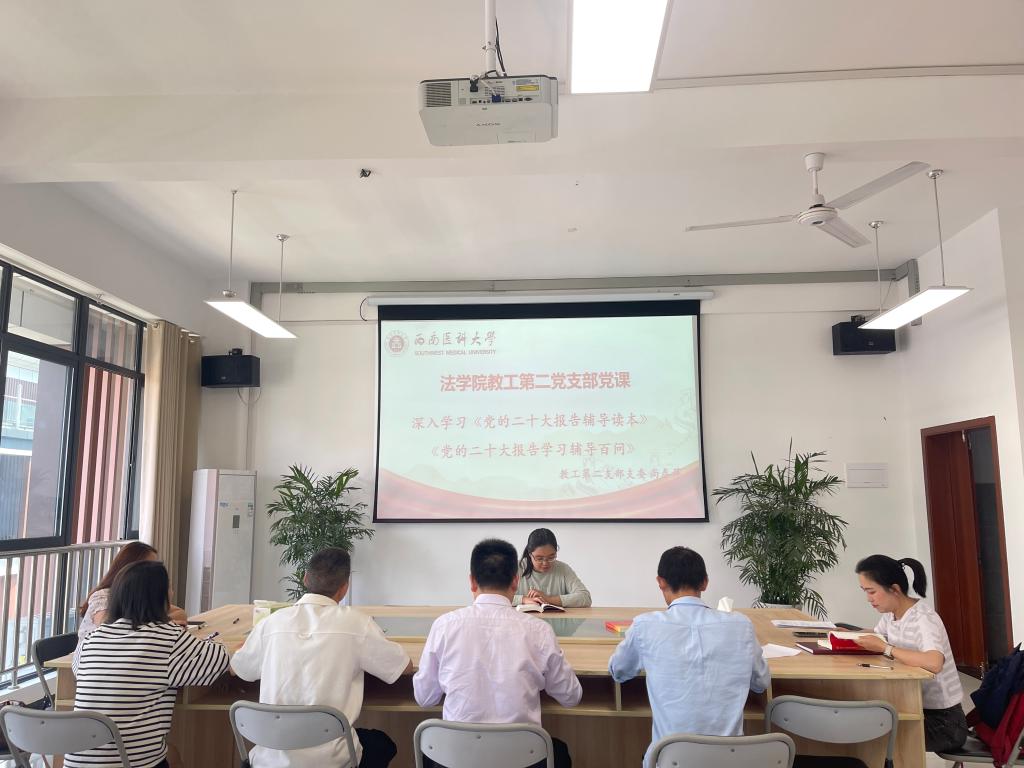 竞赛后,由支委尚春萍同志讲党课,学习内容为《党的二十大报告辅导读本》和《党的二十大报告学习辅导百问》。尚春萍同志首先分享了自己的读书心得,重点领学了《党的二十大报告学习辅导百问》中王晨的文章《全过程人民民主是社会主义民主政治的本质属性》,然后大家结合党课内容交流了学习心得。