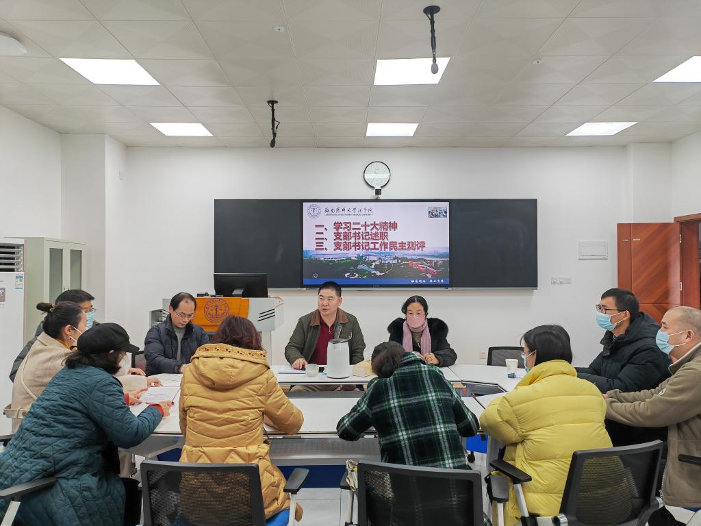 会议首先开展了党的二十大精神学习教育,由邵帅同志以《学习贯彻党的二十大精神推动全面贯彻实施宪法》为题进行党的二十大精神的学习宣讲。他从党的二十大召开背景,报告主要内容和依法治国三个方面进行了具体解读。尽管支部此前已经多次开展了党的二十大相关内容的学习,但此次从不同角度的学习仍让党员们感悟颇深,对于用党的二十大精神指导教学科研工作大有裨益。