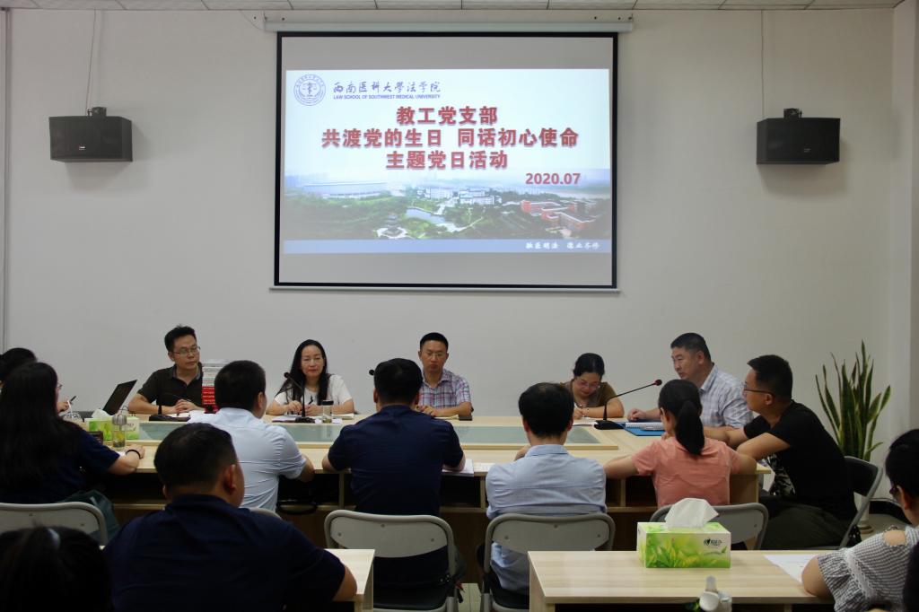 为进一步加强党性教育,强化党员的身份意识和责任意识,激励党员模范敬业做贡献,2020年7月1日,法学院教工党支部举办了“共贺党的生日,同话初心使命”主题党日活动,在庆祝建党99周年节日的同时,为21名上半年入党的党员同志过集体“政治生日”。此次活动邀请了党外统战人士参加,感受党日活动的意义。活动由教工支部书记邵帅主持。