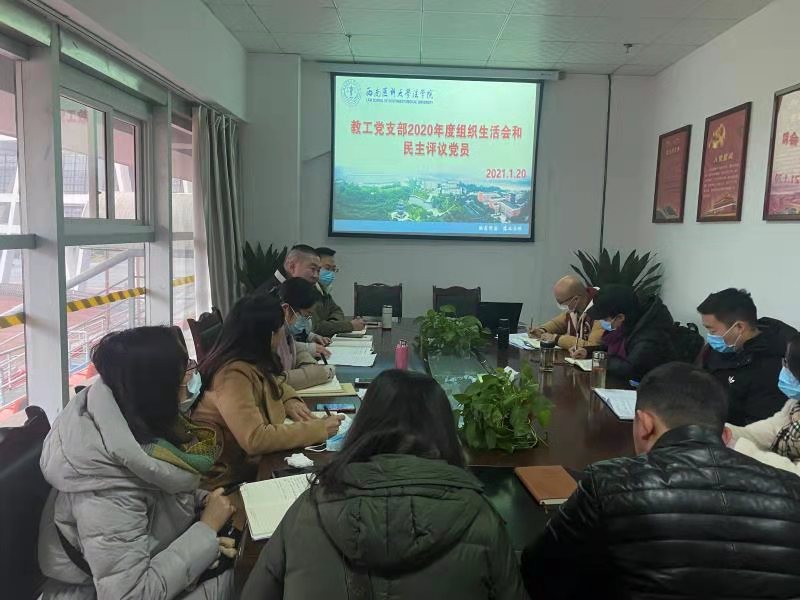 按照学校组织部门和学院党总支的安排要求,2021年1月20日,法学院教工支部召开了2020年度组织生活会并开展民主评议党员。法学院教工党支部全体党员(除个别上课的党员外)参加了本次会议,会议由党支部书记邵帅同志主持。