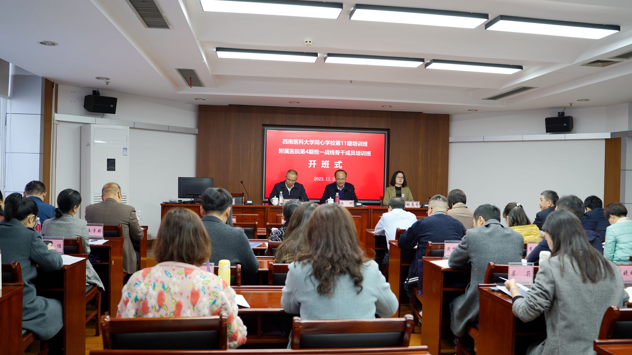 11月20日至24日,西南医科大学同心学校第11期培训班暨统一战线骨干成员培训班在浙江省社会主义学院举办。学校党委常委、统战部部长柏珂作开班动员讲话,学校各级人大代表、政协委员,民主党派骨干成员、无党派人士代表以及统战干部等32人参加培训。我院统战人士梅达成、统战委员屈坤燕参加了此次培训。