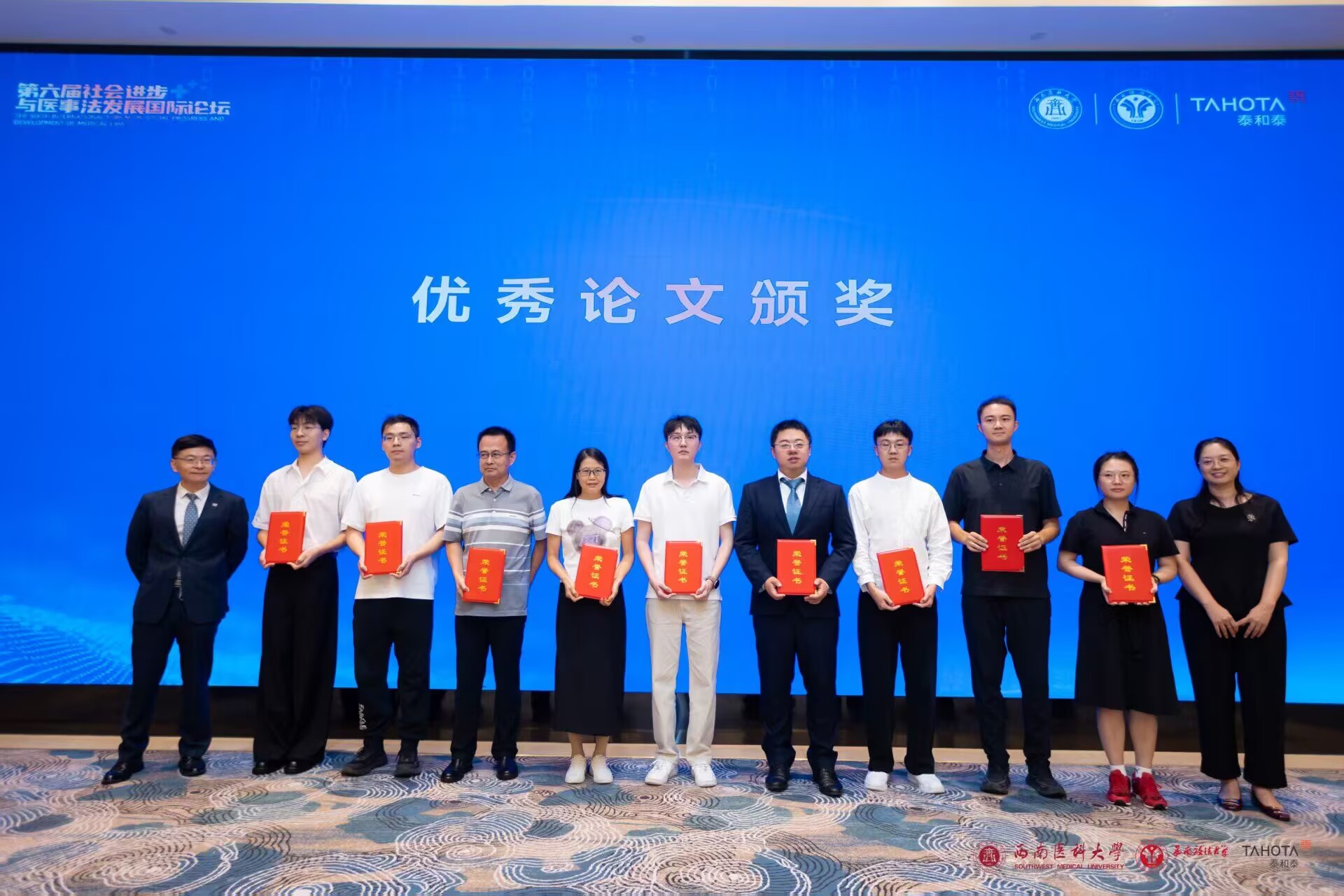在颁奖环节,西南政法大学医事法学学科带头人汪青松教授宣读了本次研讨会论文获奖名单,经专家委员会评审,共有54篇论文获奖,其中一等奖6篇,二等奖18篇,三等奖30篇,会议为获奖论文代表颁发了获奖证书。